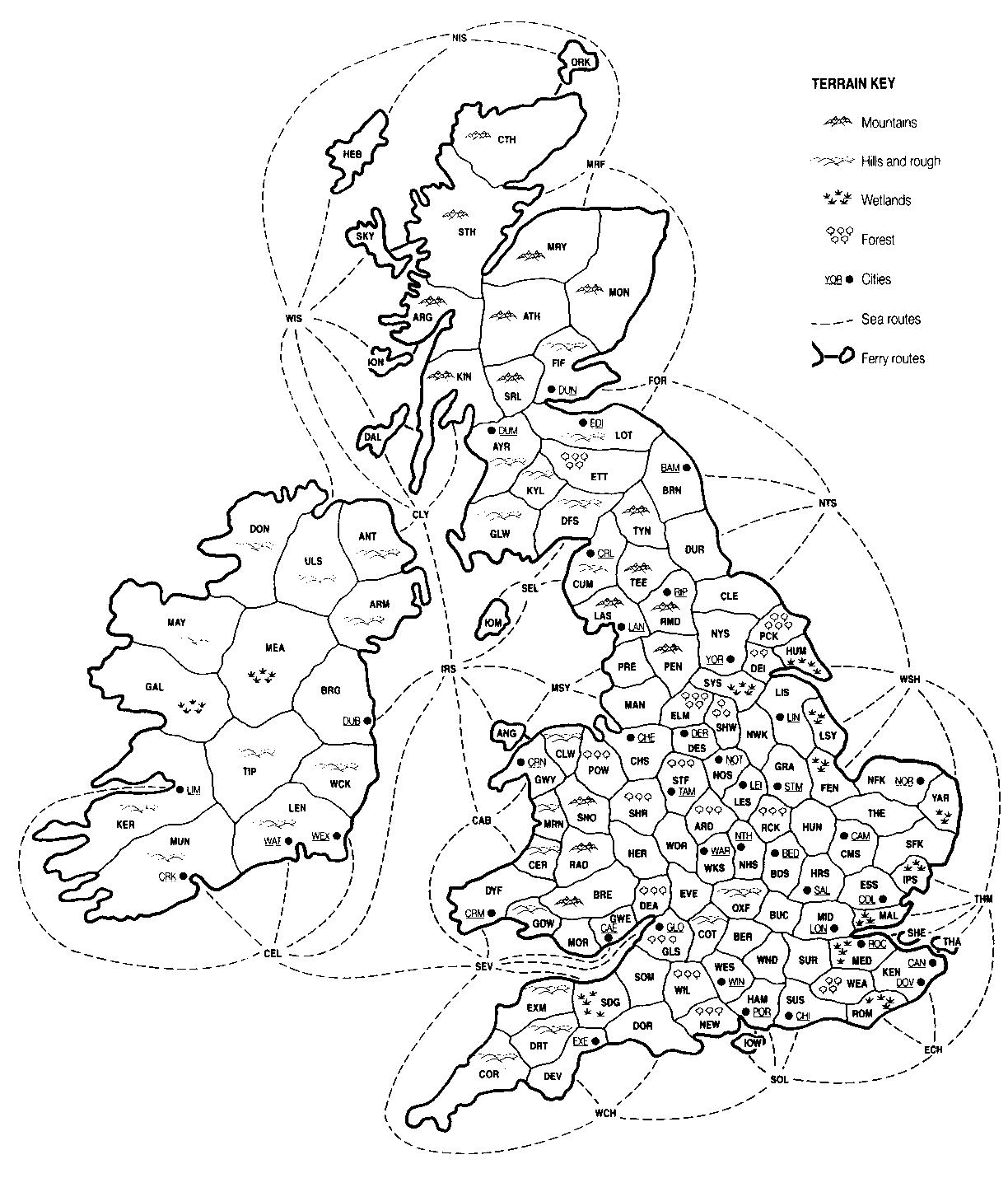 Dark Age is a game of power and conflict in Dark Age Britain. The game system is simple and straightforward, with plenty of scope for skill and skullduggery, combining the finesse of Diplomacy and the fluidity of Risk. To win the game you must expand your population to become the dominant kingdom of Britain. Only warfare will provide the room for your population to grow, but only peace will allow you to secur eyour gains. Wars must be decisive, and your diplomatic efforts may be the key to victory.